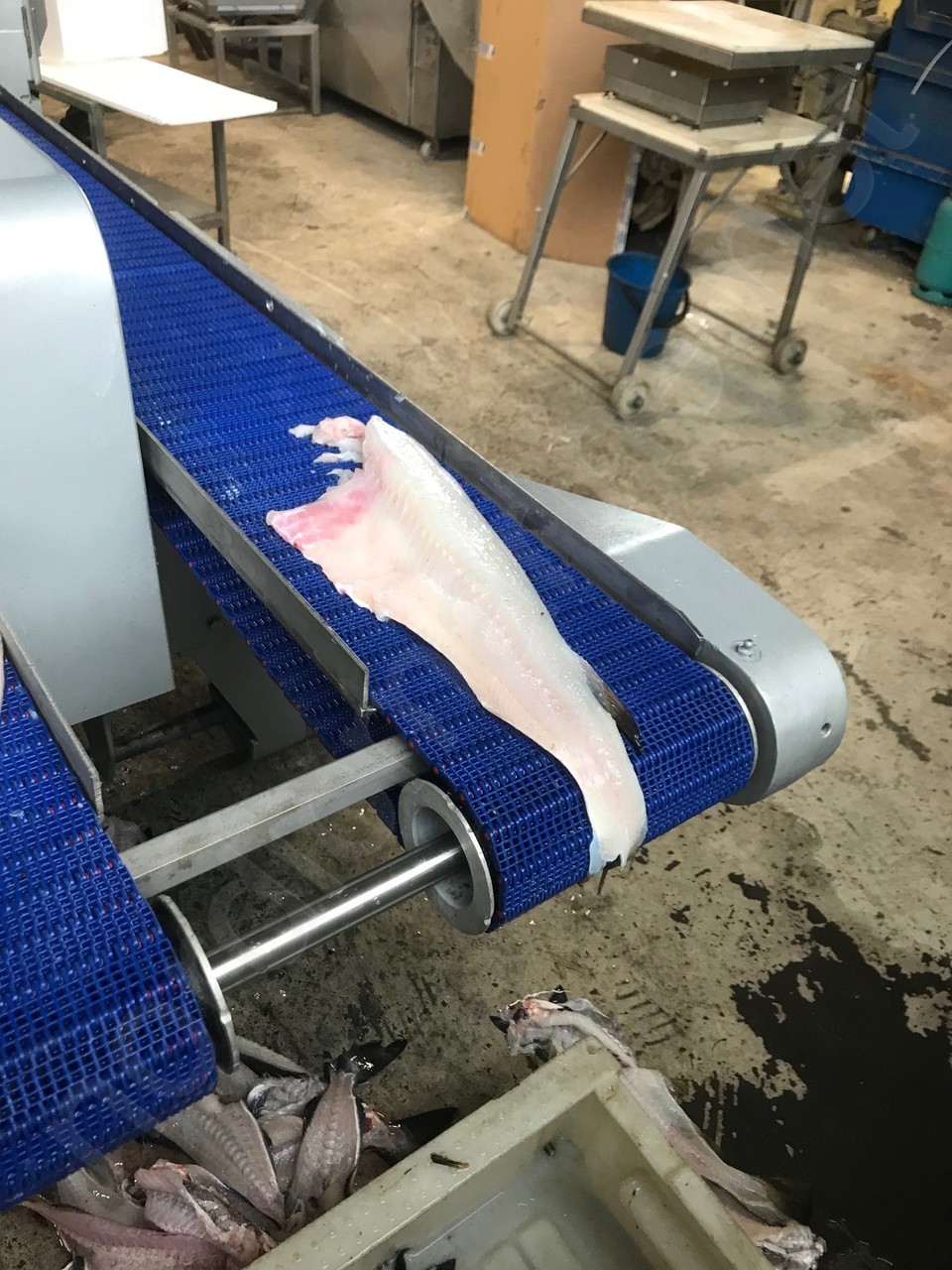 Fish are loaded on to the machine after heading. The filleting tools adjust themselves to the different fish size within the operating range. For skinning the fillets have to be transferred manually to a skinning machine.